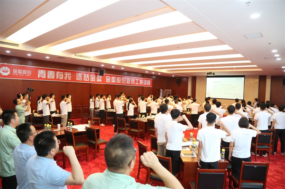 在開班儀式上,公司董事長張斌代表金徽股份對新員工的加入表示熱烈歡迎,并簡要介紹了企業基本情況、企業文化及未來發展前景,結合公司發展實際及自身經驗對新員工提出三點分享:一是“角色轉化”,步入社會后要學會鍛煉自身獨立能力,扛起職責,完成角色轉化;二是“加強學習”,善于學習,將學習動能轉化為自身工作能力,不斷提高綜合素養;三是“懂得感恩”,要心懷感恩,善于發現他人的優點,工作中的難題困惑,將會化作自我進階的養分。