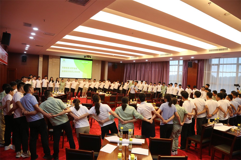 新員工們在培訓尾聲,發揮主觀能動性,自編自導自演一場青春文藝晚會,大家獻上了歌唱、舞蹈、脫口秀、朗誦等精彩紛呈的節目,充分展現了金徽新青年的蓬勃朝氣和青春風采。