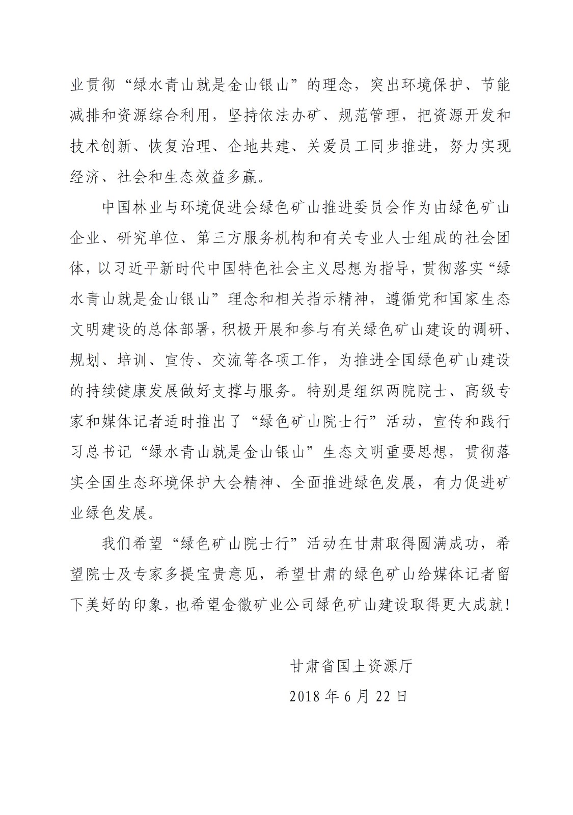國土資源廳賀信